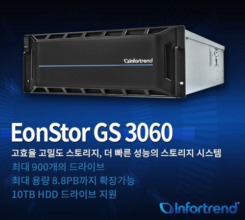 인포트렌드는 호스트와 드라이브 인터페이스에서 12Gb/s SAS를 모두 지원하는 고밀도 대용량 유니파이드 스토리지 EonStor GS 3060 시스템을 출시한다. 이는, 급격하게 증가하는 데이터 용량과 제한된 데이터 센터 공간 등 오늘날 비즈니스 환경이 직면한 문제점을 해결할 수 있는고밀도 대용량 디자인으로 설계된 시스템이다.